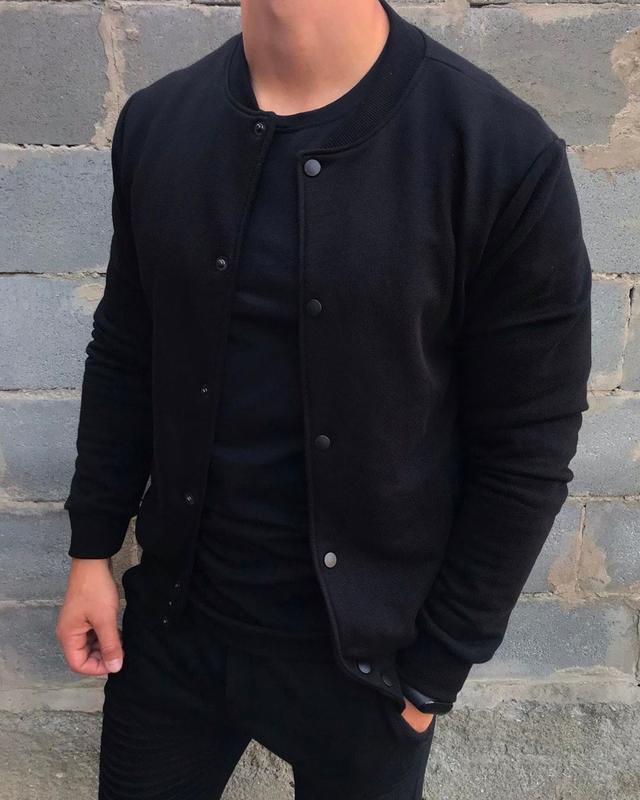 Бомбер – идеальный мужской вариант Плотный бомбер на пуговицах ТОП-качество Размер: S M L XL Материал: петля премиум, футер Манжеты на плотной рибане Бейсбольный воротник Облегающий крой