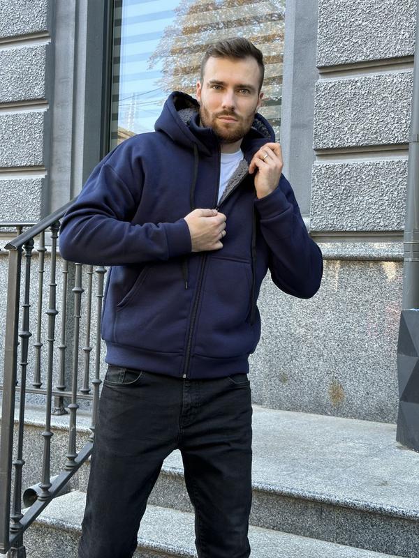 №500 Кофта худи Чоловіча. На підкладці з теди На змійці та кишеню кенгуру, З капюшоном та коміром. Шнурок на капюшоні Тканина тринитка на флісі Хорошої якості. Підкладка сірого кольору Хутро Теді Колір: Чорний, Хакі, Темно-Синій Норма Р 42-44, 46-48. Ботал Р 50-52, 54-56 Тринитка Склад тканини Бавовна 65% Поліетр 30% Елостан 5% Розмірна сітка Норма 42-44 Об г 59см Об т 52см Довжина кофти від капюшона 66см. Довжина рукава від капюшона 80см 46-48 Об г 63см Об т 56см Довжина кофти 68см Довжина рукава 80см Батал 50-52 Об г 67см Об т 60см Довжина кофти 70см Довжина рукава 83см 54-56 Об г 71см Об т 64см Довжина кофти 72см Довжина рукава 85см