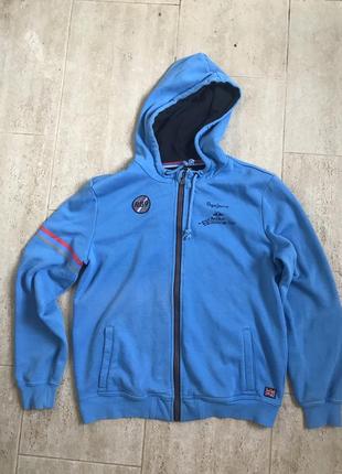 Чоловіча худі. Цвет - голубой. Длина 67см, рукава 64см, плечи 48см, ПОгруди 60см. Е нюанс на последних 2 фото - пятнишко на рукаве.