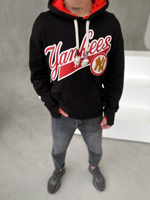 Стильне оверсайз худі «Yankees» у чорному кольорі Артикул : PS2411 - сезон: холодна осінь, зима (на флісі) - еластичні манжети - круті якісні вишивки - зручний капюшон - матеріал: 65% бавовна, 35% поліестер - made in Turkey 🇹🇷 (топ якість) Розміри: S, M, L, XL, XXL (повномірні) На фото розмір S: ❗️Параметри хлопця на фото: Зріст - 178 см Вага – 72 кг (при замовленні обов'язково вказуємо зріст та вагу для перестрахування)