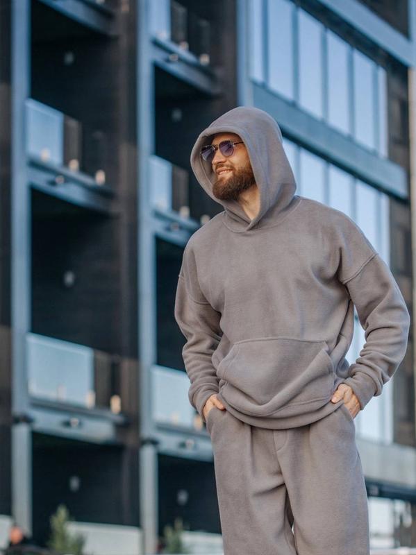 Костюм мужской очень теплый (брюки+кофта оверсайз) Размер: 46-48, 50-52, 54-56 Ткань: полар флис производство Турция (очень теплая, мягкая и приятная, не скатывается) Цвет: серый, черный