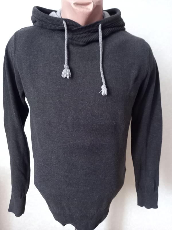 Мужская кофта с капюшоном, размер S, тонкая, качественная, 100%коттон. Длина 64 см, плечи 40 см, рукав 65 см, ПОГ 47 см, ПОТ 46 см, ПО резинки внизу 39 см (тянется).