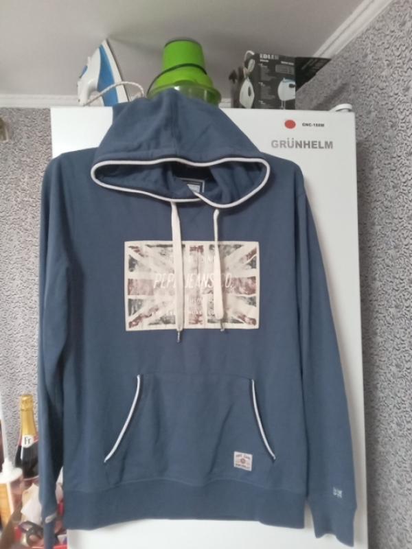 стан хороший,геть трішки мілкі окатиші ( не скрізь) та трохи припилений- попрати,плям нема...гарний стриманий колір,зручне,тепле,кармани,капюшон пог 60 см поб 48 см різинка рукав 64 см плечі 48 сс довжина 69 см