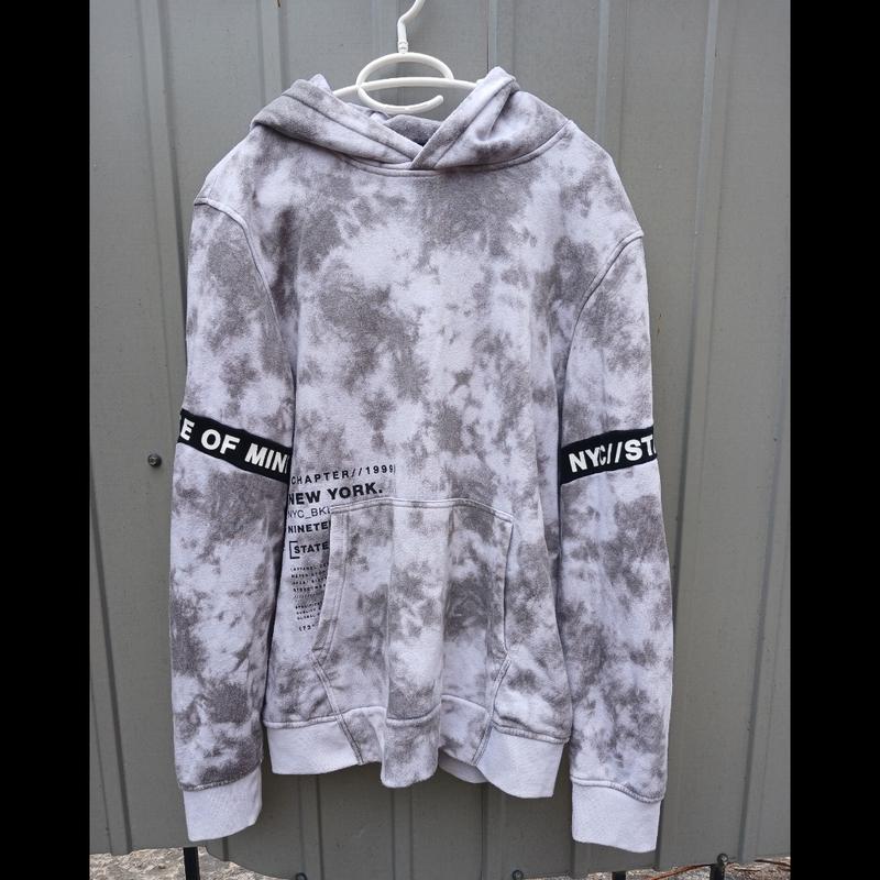 Стан бы/у, рассмотреть по фото, под капюшоном проожженная дырка,видно на фото, когда закупалась, не заметенная под капюшоном, не видно было. Замеры:полуобхват груди-60см,плечи-51см, длинна по спине-68см, длинна рукавов-66см, длина внутреннего шва рукавів-52см,size-M,60%cotton,40%polyester,made in MYANMAR.