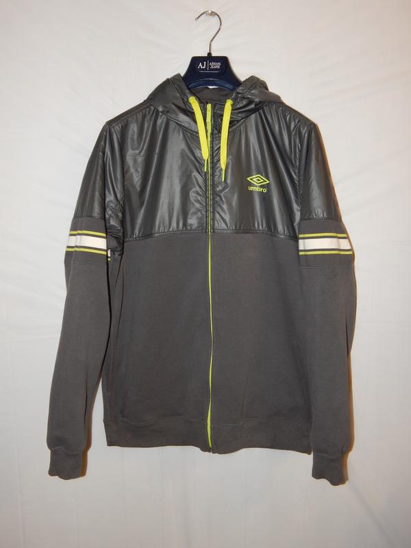Зип худи в стиле color block UMBRO Зип худи в стиле color block UMBRO в отличном состоянии Без дефектов и нюансов Чистая, целая, после стирки Застёжка молния YKK Верхняя половина из нейлона, нижняя-хлопковая часть Плотная, на байке Сезон: осень-зима Основной цвет-хаки На рукавах трикотажные вставки Два кармана Размер L, но маломерит, лучше на 46, не полный 48 По замерам плечи 42 см, ПОГ 54 см, длина 72 см, рукав от горловины 81 см