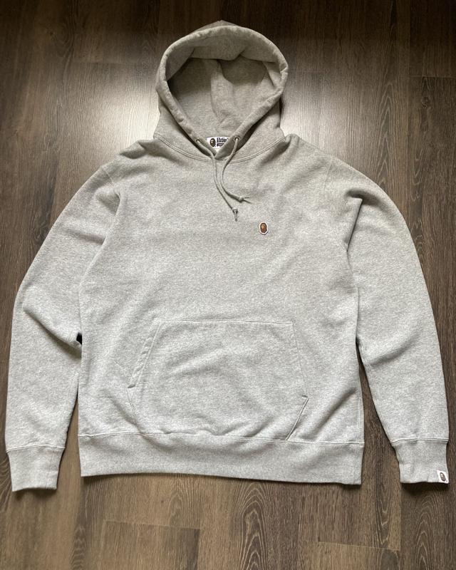 Мужское худи серого цвета Bape A BATHING APE Изготовлен из высококачественного хлопка, этот худи отличается исключительным комфортом и долговечностью. Его культовый логотип Silicon Ape Head добавляет нотку игривой утонченности любому наряду. Вместительный капюшон и карман кенгуру обеспечивают дополнительное тепло и функциональность. Независимо от того, отправляетесь вы на улицу или отдыхаете дома, эта толстовка обязательно привлечет внимание и создаст вам стильный уют. Лого на спине светится в темное Больше фото отправлю в сообщения Стан - идеальный Размер XL Плечи 53cм Грудь: 62cм Длина: 74cм Рукав к плечу 71cм