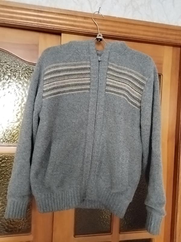 Кофта мужская с капюшоном ,на молнии. Очень стильная, красивая и удобная. Серого цвета. Размер 48. Длина от ворота по спине -70см. Длина рукава от плеча -67 см. Ширина в плечах -50 см