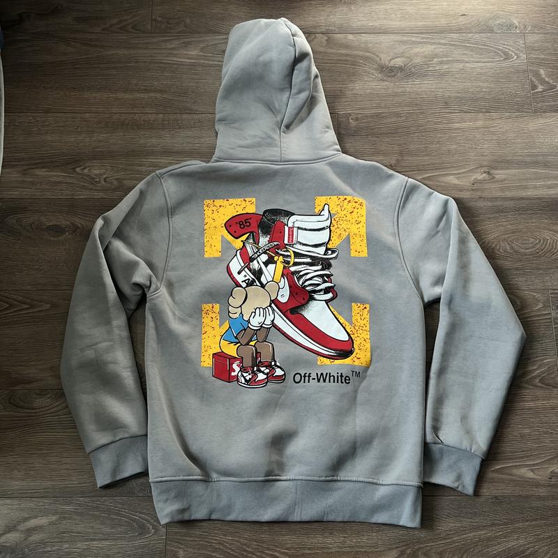 Теплая худи от люксового бренда Off-White KAWS в коллаборации Nike AirJordan, утепленная, в середине мягкая, плюшевая, оригинальная новая по магазинам