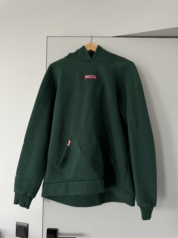 Худи украинского производителя Hard Жесть. Зеленого цвета. На флісі