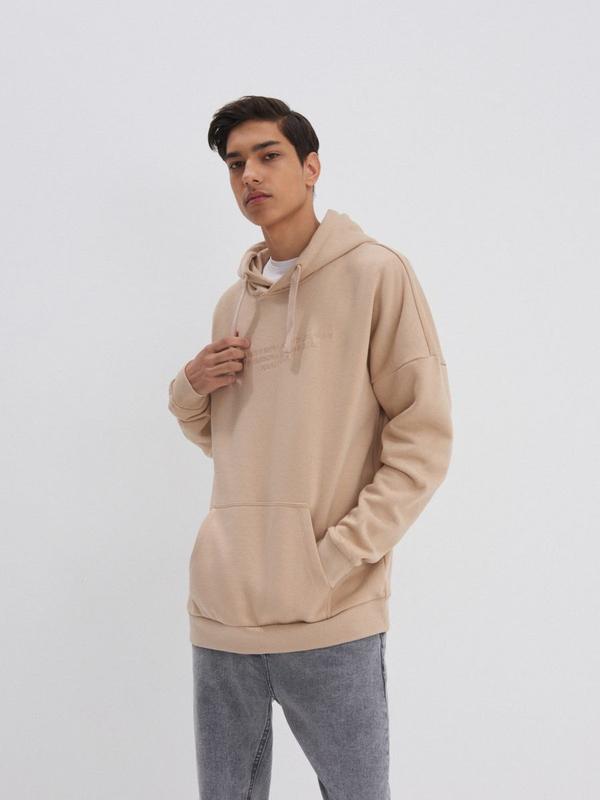 Толстовка - комфортная и мягкая на ощупь, имеет свободный крой. Модель отлично подчеркнет мужскую фигуру. Характеристики: - тип толстовки: с капюшоном; - передний карман «кенгуру»; - с высоким содержанием хлопка; - на резинке; - размер: S/M/L; - цвет: бежевый; - декор: вышивка.
