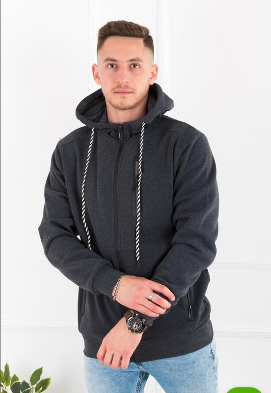 Мужское теплое худи на флисе молнии кофта