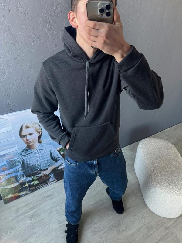 Размеры: S M L XL XXL Материал: трехнитка, на флисе Худи-кенгуру на шнурках с утепляющим капюшоном. арт30