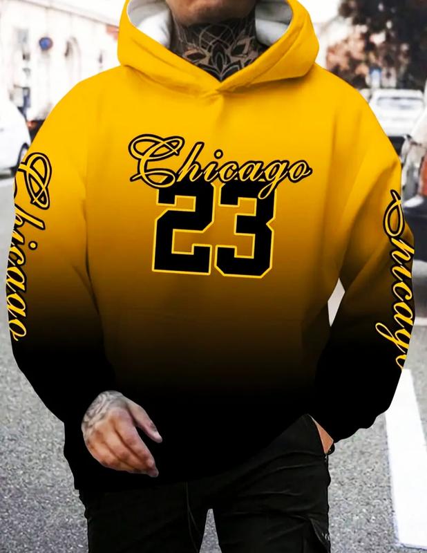 Мужской Худи с Градиентом Чикаго #23 и Кенгуру Карманом - Удобный Полиэстер, Повседневный Пуловер для Неформального наряда