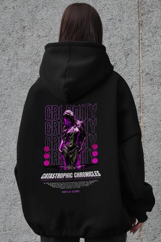 Женское оверсайз худи толстовка на флисе с капюшоном и принтом without calomity black