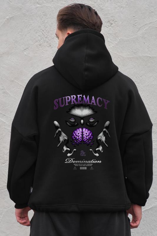 Мужское оверсайз худи толстовка на флисе с капюшоном и принтом without supermacy black