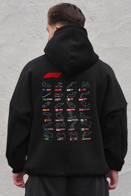 Мужское оверсайз худи толстовка на флисе с капюшоном и принтом without track black