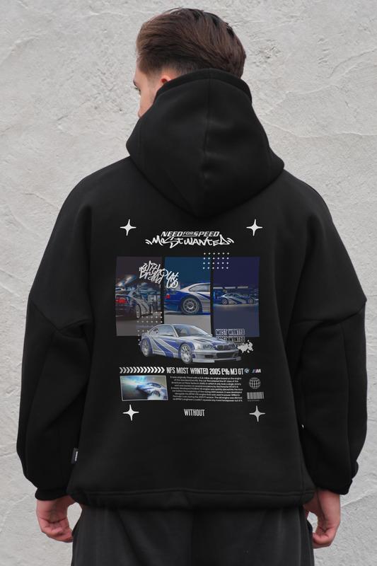 Мужское оверсайз худи толстовка на флисе с капюшоном и принтом without wanted black