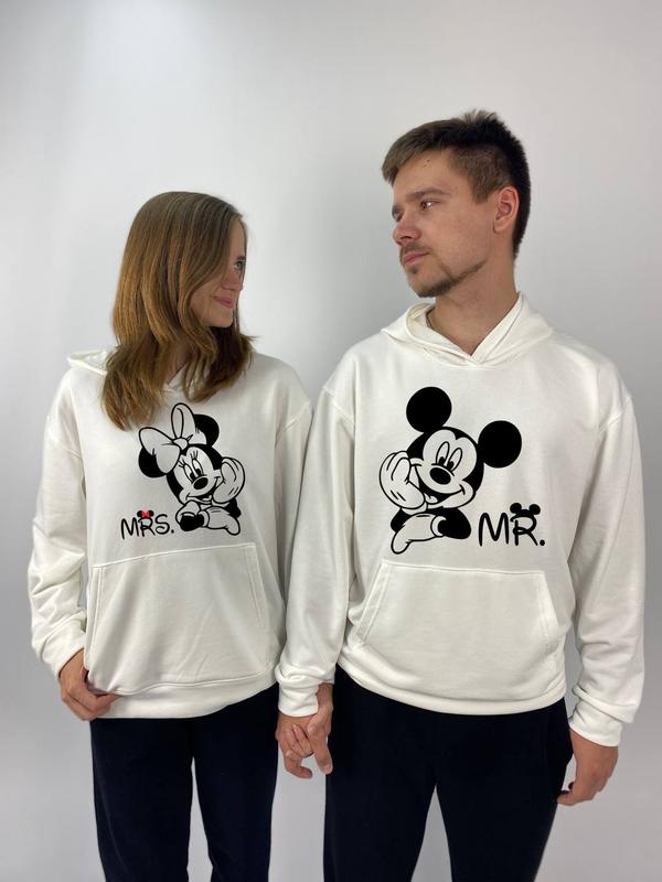 Парные худи без флиса с капюшоном, принт "микки и минные маус" (73)