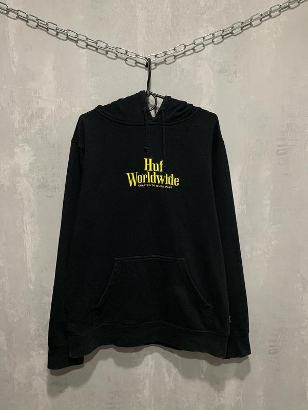 Худі світшот чоловічий чорний huf worldwide big logo оригінал кофта