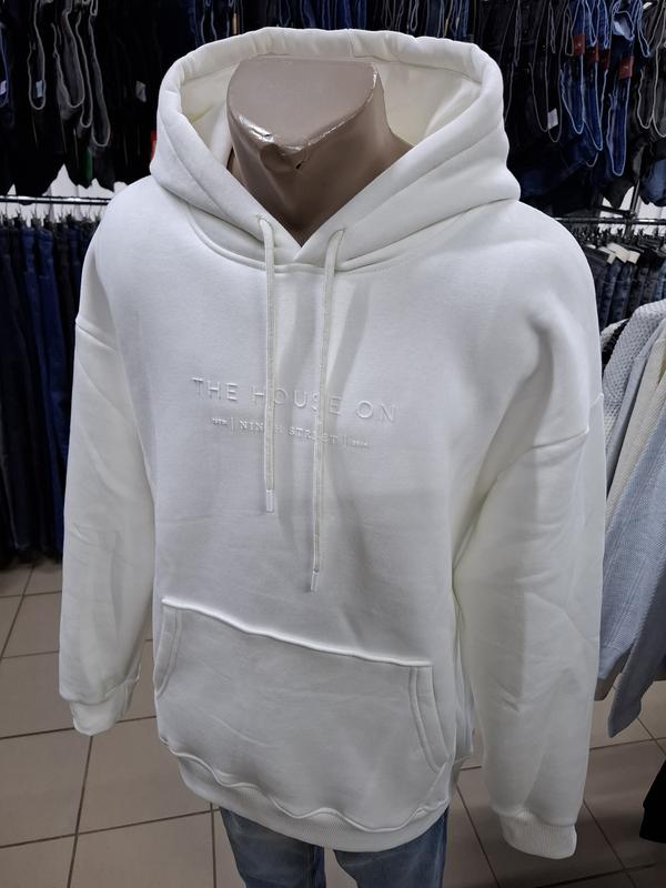 Мужской теплый худи белому цвету Утеплял: флис Состав ткани: - котон 70% - полиэстер 30%