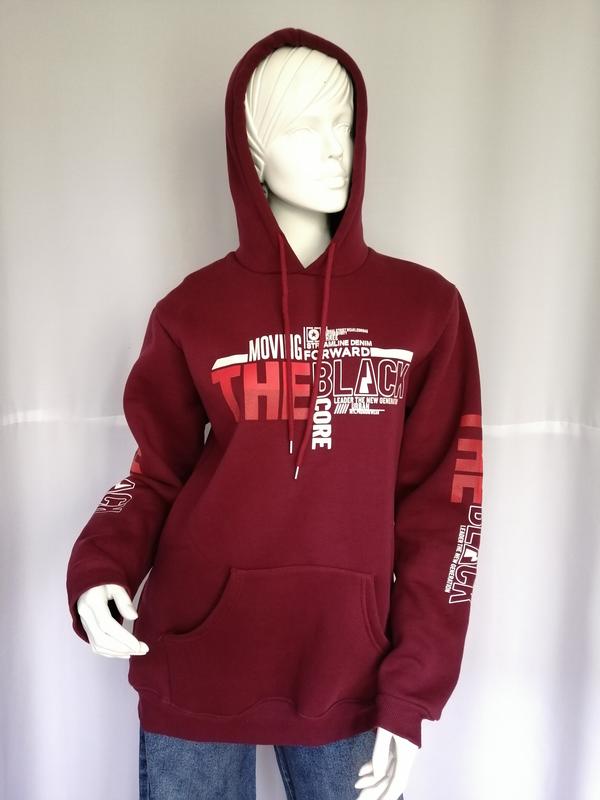 Бордовое мужское худи с капюшоном и принтом с надписями, теплое, на флисе. Дополнительные фото и замеры по запросу.