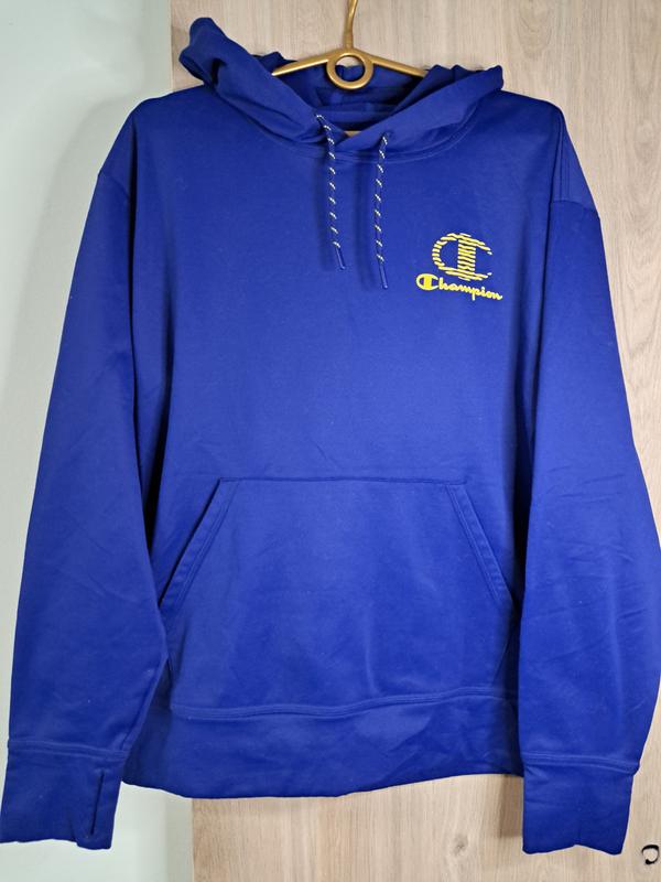 Теплое синее худи на флисе champion с графическим лого на спине и вырезом под пальцы (м)