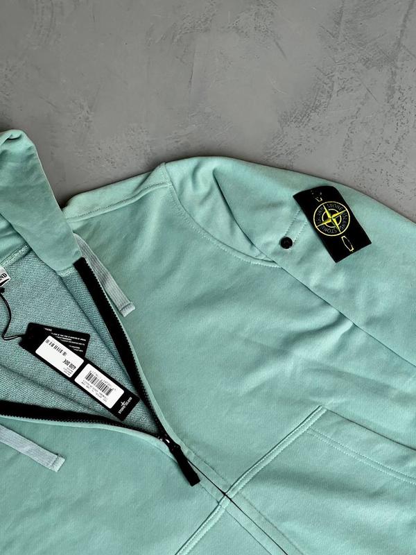 Зіп-Худі Stone Island ❤️🔥 🎨Колір - ментол ✅Розміри: - S M L XL XXL 🧊Наявні картонні та тканні бірки 🧊QR код пробивається і переходить на головну сторінку certilogo 🧊Якісна тканина, не втрачає форму та колір 🧊Упаковано у брендовий ZIP-look пакет 🧊Два кармани по боках 🧊Фурнітура УKK