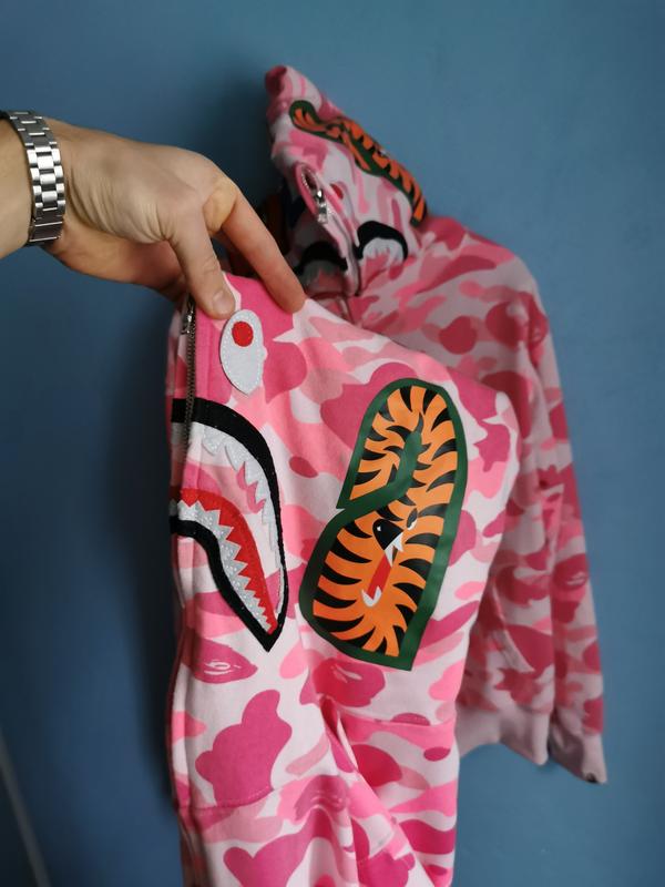 Худи bape abc pink camo shark full zip с капюшоном - размер s и l унисекс