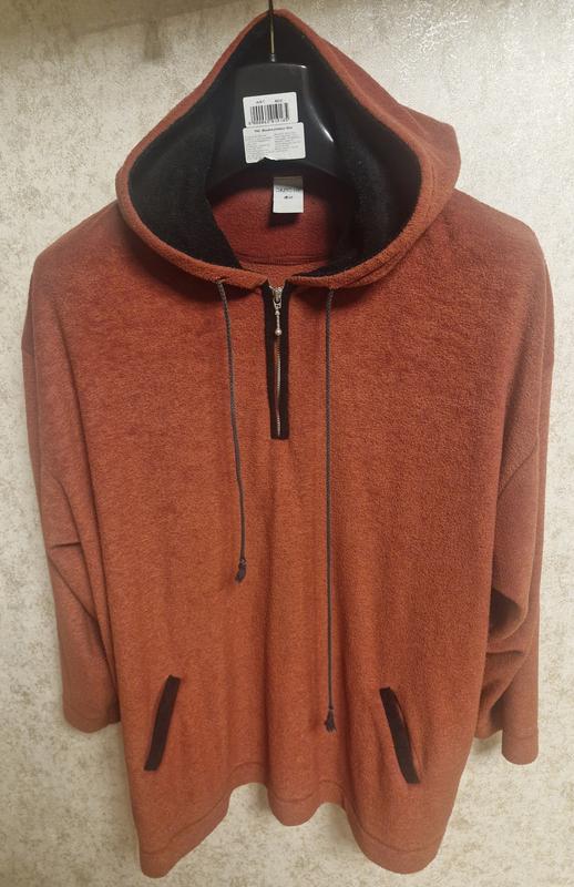 🧡 Продам Теплую Оранжевую Худи-Тунику SIZE UP (р. 58/60) Предлагаю вашему вниманию уютную и стильную худи-тунику свободного кроя в насыщенном терракотовом/оранжево-рыдомом цвете от бренда SIZE UP. Идеальный вариант для прохладной погоды! ✨ Особенности модели: Фасон: Свободный, оверсайз крой, обеспечивающий комфорт и не сковывающий движений. Можно носить как худи или как тунику (длина видна на фото). Капюшон: Глубокий, с внутренней стороны обработан контрастной черной тканью. Застежка: Короткая молния спереди, позволяющая регулировать глубину выреза. Детали: Черные шнурки и два функциональных кармана-прорези спереди (обработаны черным). Рукава: около 3/4 или полных (в зависимости от роста, на фото смотрятся укороченными/широкими). 🧵 Состав и уход: Состав ткани: 72% Polyester (Полиэстер) 28% Viskose (Вискоза) Материал мягкий, приятный на ощупь, похож на флис или мягкую махру/букле. Рекомендации по уходу (по пиктограммам): Стирать при температуре не выше 40°C. Не отбеливать (перекрещивающийся треугольник). Гладить при низкой температуре (один точка). Разрешена химчистка (круг с буквой Р). Не сушить в стиральной машине (перечеркнут квадрат с кругом). 📏 Размер: Указан на наборе: 58/60 (это соответствует большому размеру). Ориентируйтесь на замеры, чтобы точно определить, подойдет ли вам вещь! Состояние: Б/в, но отличное, без дефектов Для точного определения размера, пожалуйста, ориентируйтесь на замеры, сделанные по изделию в спокойном состоянии: Полуобхват груди (ПОГ): __см Длина худи по спинке (от плеча): ___ см Длина рукава (от горловины): ___см (этой замер важен для худи с приспущенным плечом) Длина рукава (от шва плеча): ___ см Ширина по низу: ___ см Плечо (примерно): ___см (если плечевой шов четко выражен)