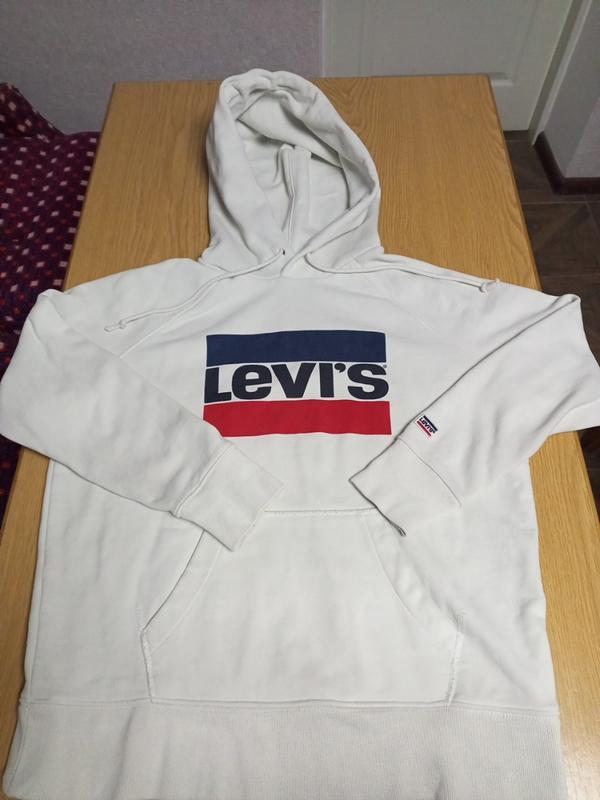 Худи белое Levi's. Оригинальный. Качественное и плотное. Все замеры видны на фото. Есть загрязнения и мелкие пятнышки сзади, похожие на ржавчины🤔 Сфотографированные - присмотритесь🤷