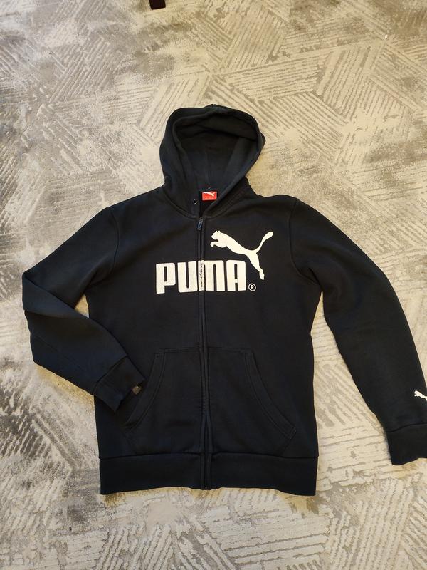 Соуп худи Puma с середины флис в очень хорошем состоянии,оригинал,черного цвета,без дирок,штопок,пропалов, замок целый.Размер M(см.фото бирки).Едине немного является потеря насыщенности цвета, да все окуты.