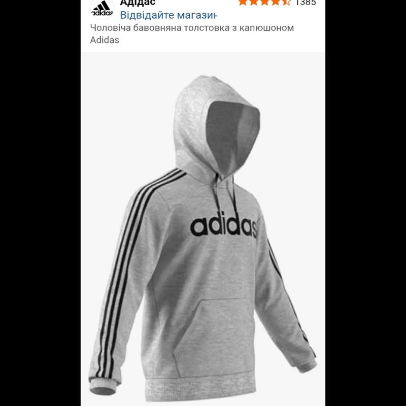 Сірий брендовий худі від Adidas Essential , стильне та комфортне. в одному місці,є жовті цятки, якщо зблизька придивитись, при носінні не видно
