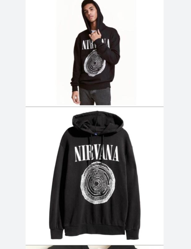 новый худи H&M NIRVANA без дефектов и следов ношения изнанка махра р.с длина 75 Подмышки 54 низ 43 Плечи 54 Рукав 62 см