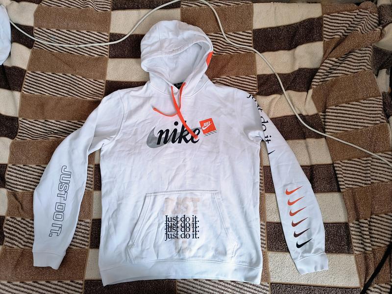 Худи винтаж Nike Just Do It.В отличном состоянии, без нюансов,без пятен и катышков.Принты без трещин.Не плотная.Размер М.Замеры - спина с манжетом 64см,плечи 44см,пахвы 56см,низ 49см,рукав от шеи с манжетом 81см, от плеча 70см, от подмыше 55.Влых покупку!