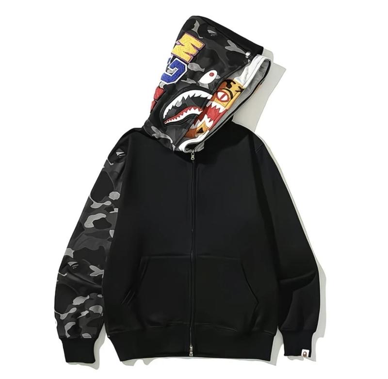 худі A Bathing Ape (BAPE) з подвійним капюшоном на повній блискавці з камуфляжними рукавами люкс якісь 1:1 до оригіналу