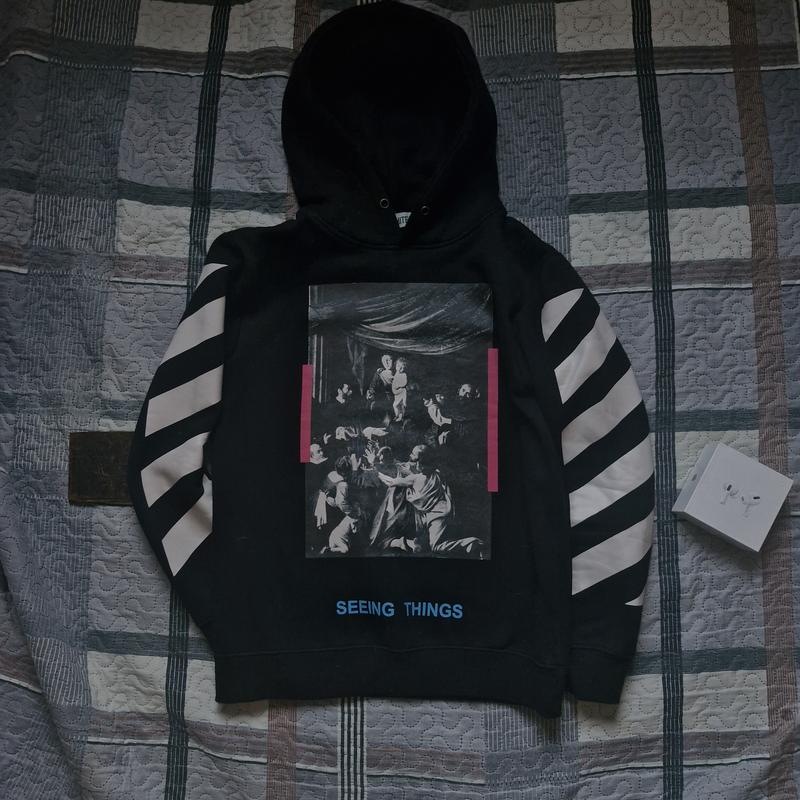 **Худи Off-White Seeing Things** Оригинальное худи Off-White с фирменным принтом*Seeing Things* и культовыми стрелками на спине. Стильный стритстайл, премиальное качество. * **Размер:* S **Материал:* 100% хлопок **Стан:** идеальный, без нюансов **Цвет:** черный * **Бренд:** Off-White Хорошо держит форму, приятное к телу. Подойдет как парням, так и девушкам. 📦 Открытка Новой Поштой 💬 Пишите — ответьте быстро