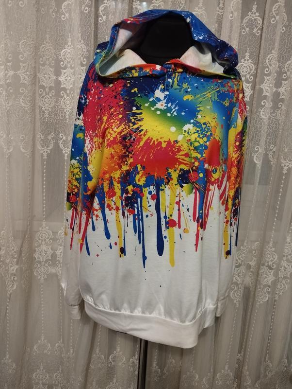Яркий худи унисекс "Paint Splatter" / Толстовка с принтом краски Стильное и заметное худи с уникальным дизайном цветных брызг краски. Идеально подойдет для тех, кто любит яркую и креативную одежду в стиле кэжуал. Размер указан М. ПОГ 59. Рукав 54. Длина изделия 66 см. Новый. 95% полиэстер. 5% еластан.