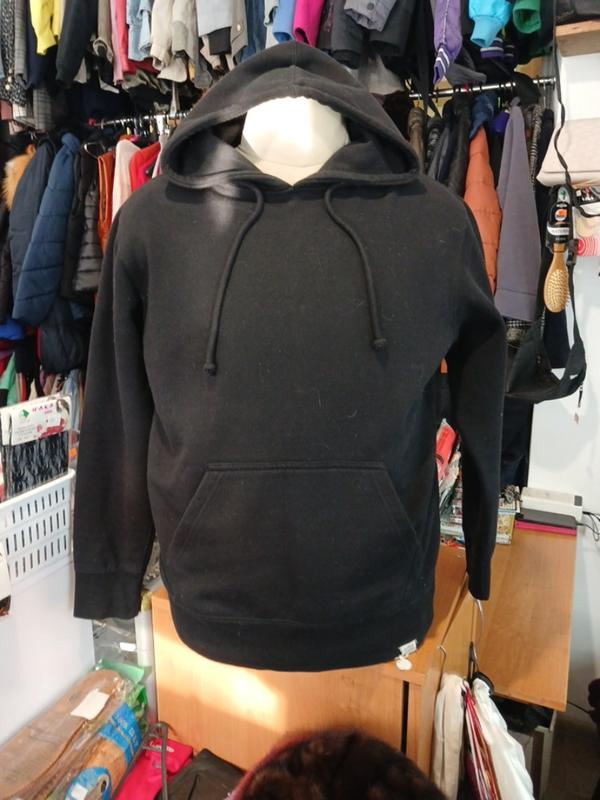 классическое черное мужское худи с капюшоном и накладным карманом типа «кенгуру». на флисе утеплена. размер М. длина 71 см плечи 51 см рукав 61 см по груди 58 см 22/7