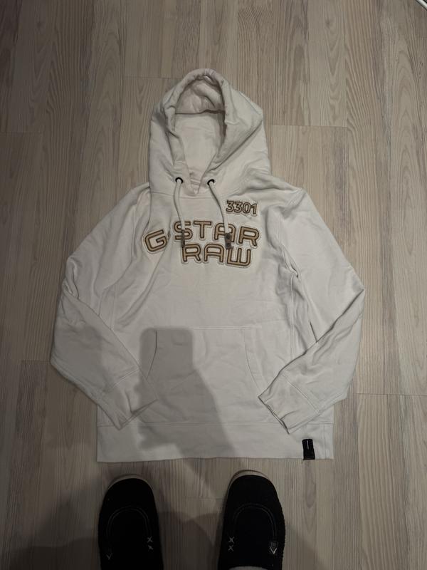 Худі G-Star Raw 3301, розмір L 🤍 Стильне світле худі з обʼємним логотипом 🔥 Оригінальний дизайн G-Star Raw 🧵 Якісна, щільна тканина — комфортне в носці 👕 Зручний капюшон + кишеня кенгуру ✨ Базова річ, яка легко комбінується з джинсами чи спортивними штанами 📏 Розмір: M Стан: хороший 📩 Пишіть у повідомлення — за потреби скину заміри та додаткові фото.