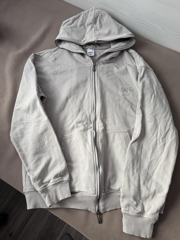 Сірий зіп-худі від українського бренду, дуже гарної якості, приємний сірий колір. Жодних дифектів, лікті не витягнуті. Кофта без утеплення, тому ідеально підійде на весну або прохолодні літні вечори. 📌Заміри: Довжина: 69 см Ширина: 58 см Плечі: 58 см Рукав від плеча: 62 см