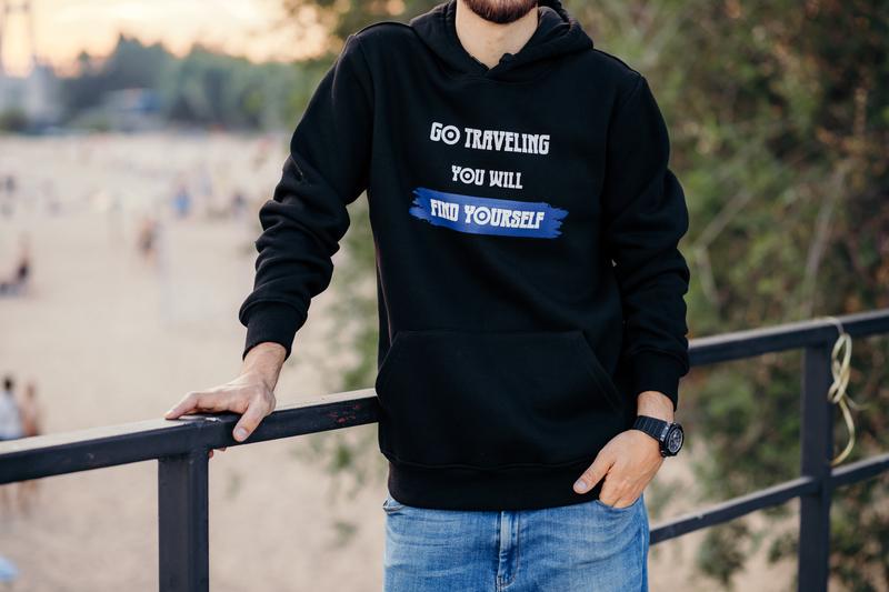 Качественное, мягкое мужское худи. Go traveling you will find yourself - отправься в путешествие и ты найдешь себя! Высокое качество печати ✔️ Высокое качество одежды ✔️ Размеры в наличии.