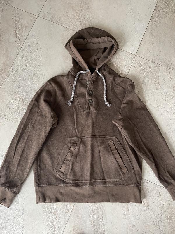 чоловічий худі з бавовни утеплений флісом всередині fat face. Колір світло-коричневий застібка в районі грудей на ґудзики. Капюшон з фіксуючим шнурком. Одна суцільна кишеня з двома входами. Ребристі края. РОЗМІР: М ЗАМІРИ: Довжина 66 Рукав 64 Плечі 46 ПОГ 61 СКЛАД: бавовна СТАН: ідеальний ➖➖➖➖➖➖➖➖➖ Речі в наявності👗🧥👠 Фото на собі не роблю. 🙅♀️ Відправка: НП, Укрпошта📦 Всю необхідну інформацію надам😊