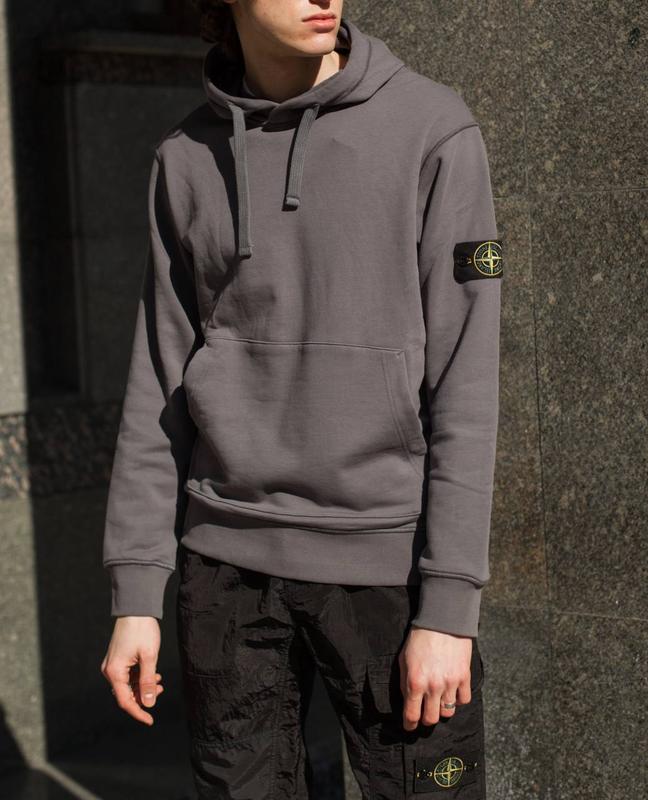Арт 64120 Цвет Grey STONE ISLAND Цена 5050 грн Толстовка с капюшоном из мерсеризованного хлопка. Капюшон с кулиской. Карманы-кенгуру. Клиновидные вставки в резинку в области пройм. Манжеты и низ в резинку. Состав: 100% Хлопок Тип: Толстовки