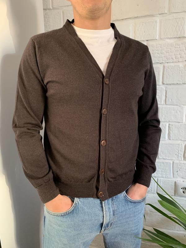 Стильний кардиган італійського бренду Conte of Florence! Підійде на хлопця з параметрами: довжина по спині: 63 см, напівобхват грудей: 50 см, плечі: 39 см довжина рукава від плеча: 60 см Стан нового!
