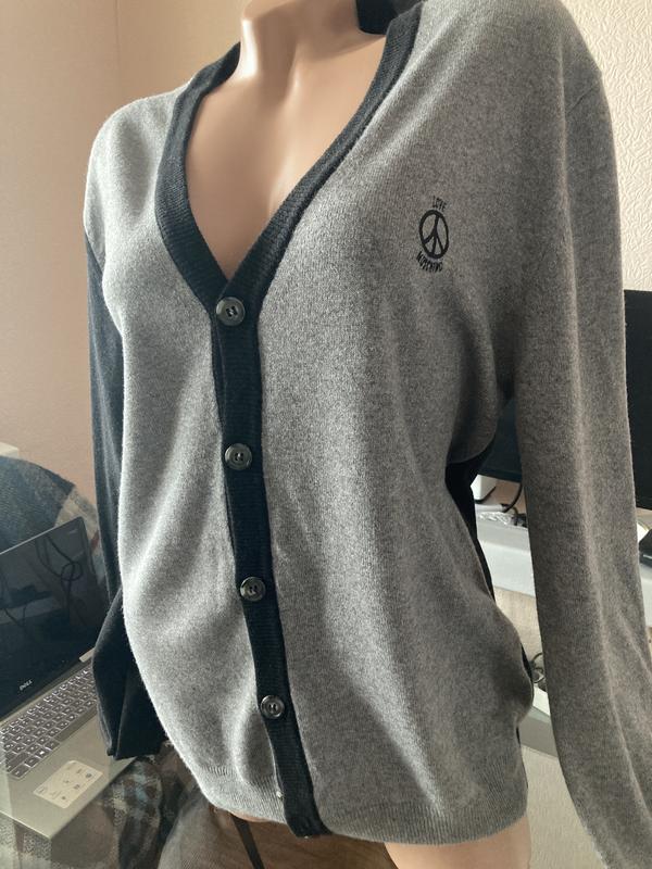 Кардиган Love Moschino унісекс ПОГ-52 Длина-70 Длина рукава -72 ширина плеча-14,5 Отличное качество, в целом хорошее состояние, но есть нюанс, небольшая дырочка- механическая, почти не заметная. Выглядит стильно. Один рукав серый- другой черный. Размер XL-, подойдет и на L. Дополнительные фото скина в приват