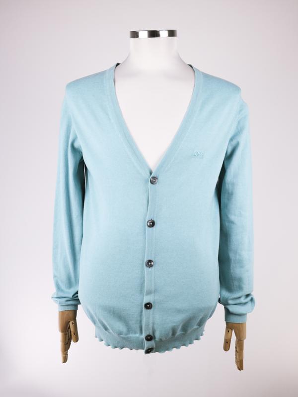 HUGO BOSS Кардиган бавовняний із домішкою вовни 📏 Розмір: L 🎨 Колір: Тіффані 🧵 Склад: 85% Бавовна, 15% Вовна 👍🏻 Стан: Ідеальний 🏭 Виробник: Туніс 📏 Мірки: ▫️ Плечі: 50 ▫️ Груди: 57 ▫️ Довжина рукава від плеча: 71 ▫️ Довжина по спині: 70 💰 Ціна: 1000 грн (RRP: 5500 грн)