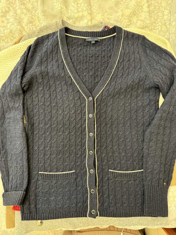 Кардиган Tommy Hilfiger, размер xs, состояние идеальный, цвет употреблена ярче, темно синий. Склад котон. Длина 59 см Ширина н/о 43 см Рукав длина 59 см