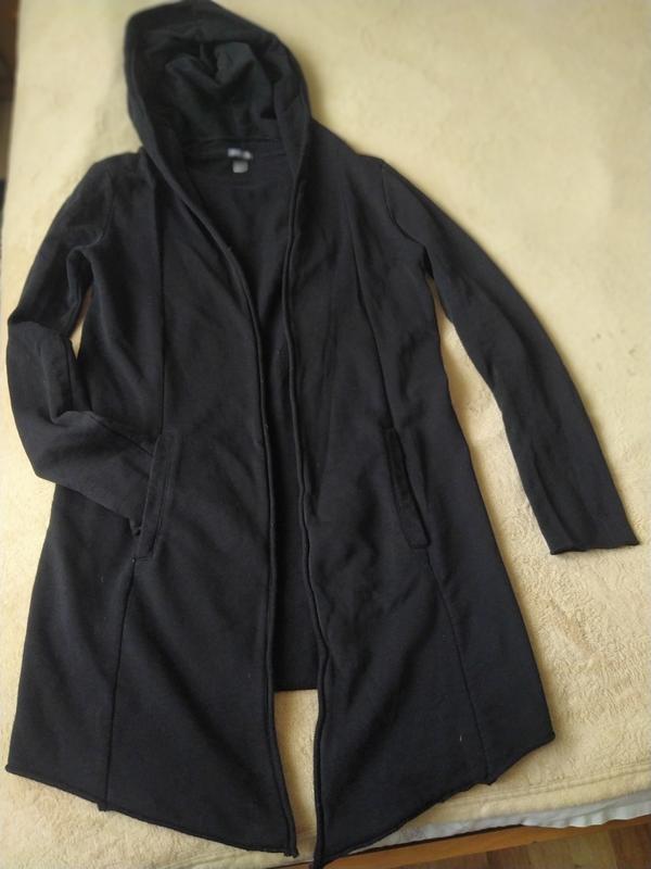 стильная кофта кардиган с капюшоном с двумя внутренними карманами.По спине короче с переди длиннее