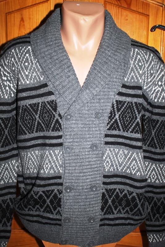 Дуже теплий с двобортною застібкою і жакардовою вязкою чоловічий кардиган(кофта),розмір XL,наш приблизно 50-52