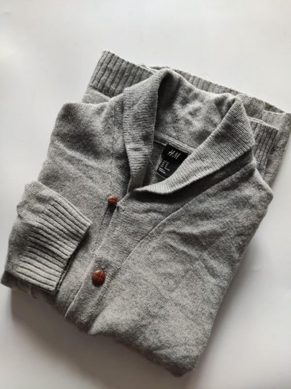 Кардиган шерстяной H&M серый р. М Кардиган – это всегда красивая и стильная дополнительная деталь к основному мужскому гардеробу! Прекрасно подходит к любому гардеробу и стилю в одежде – от свободного до классического и официального. Кардиган H&M выполнен из шерстяной смесовой ткани средней плотности. Прямого кроя. Шлевый воротник на пуговице. Застежка- пуговицы мячики коричневого цвета. Два кармашка. Рукава и низ - манжеты.Дополнительные пуговицы на бирке Состав - 50% Lana wool, 30% Акрил 20% полиамид Цвет – серый, натуральный серый шерстяной. Розмір – на бірці М Замеры – Плечи – 42, ПОГ – 50 ПОТ –48, ПОБ –50, Длина –67, Рукав-64. Состояние очень хорошее практически идеальное. Незначительные следы использования, без броков. Доставка - НП, Укрпошта Meest Rozetka Отправка по полной оплате или предоплате 150 грн. Благодарю за понимание!